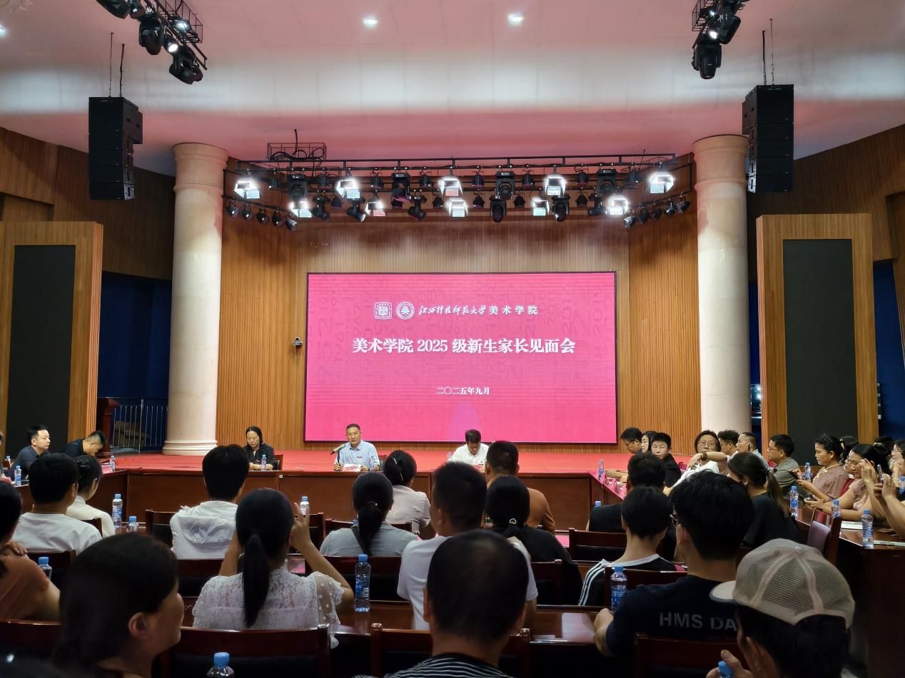 新生报到当天下午,美术学院在多功能报告厅举办2025级新生家长见面会,380余名新生家长与学院领导、系主任、辅导员齐聚一堂,以“共话成长、同筑未来”为主题,搭建起深度沟通的家校育人桥梁。更将“国家要求、社会需求、个人追求”导向融入家校沟通核心,为“一核两翼三维四化”模式中“家校协同”关键环节奠定基础。