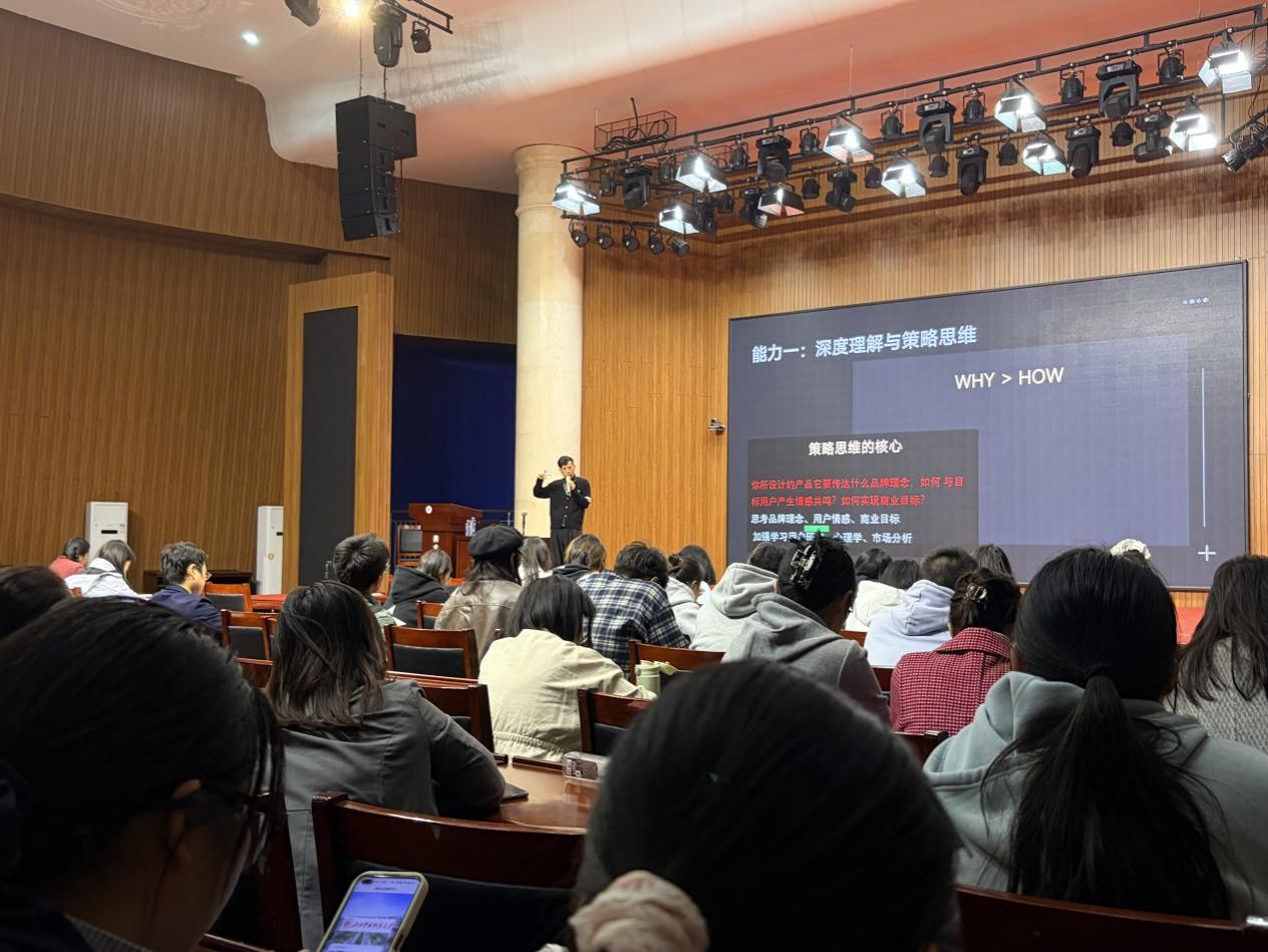 近日,北京服装学院客座教授李少文受邀在美术学院多功能报告厅,以“AI浪潮下设计师的进化与重生”为题作主题讲座。本次讲座旨在对接数智时代设计人才培养需求,为师生搭建学界与业界的前沿对话桥梁。