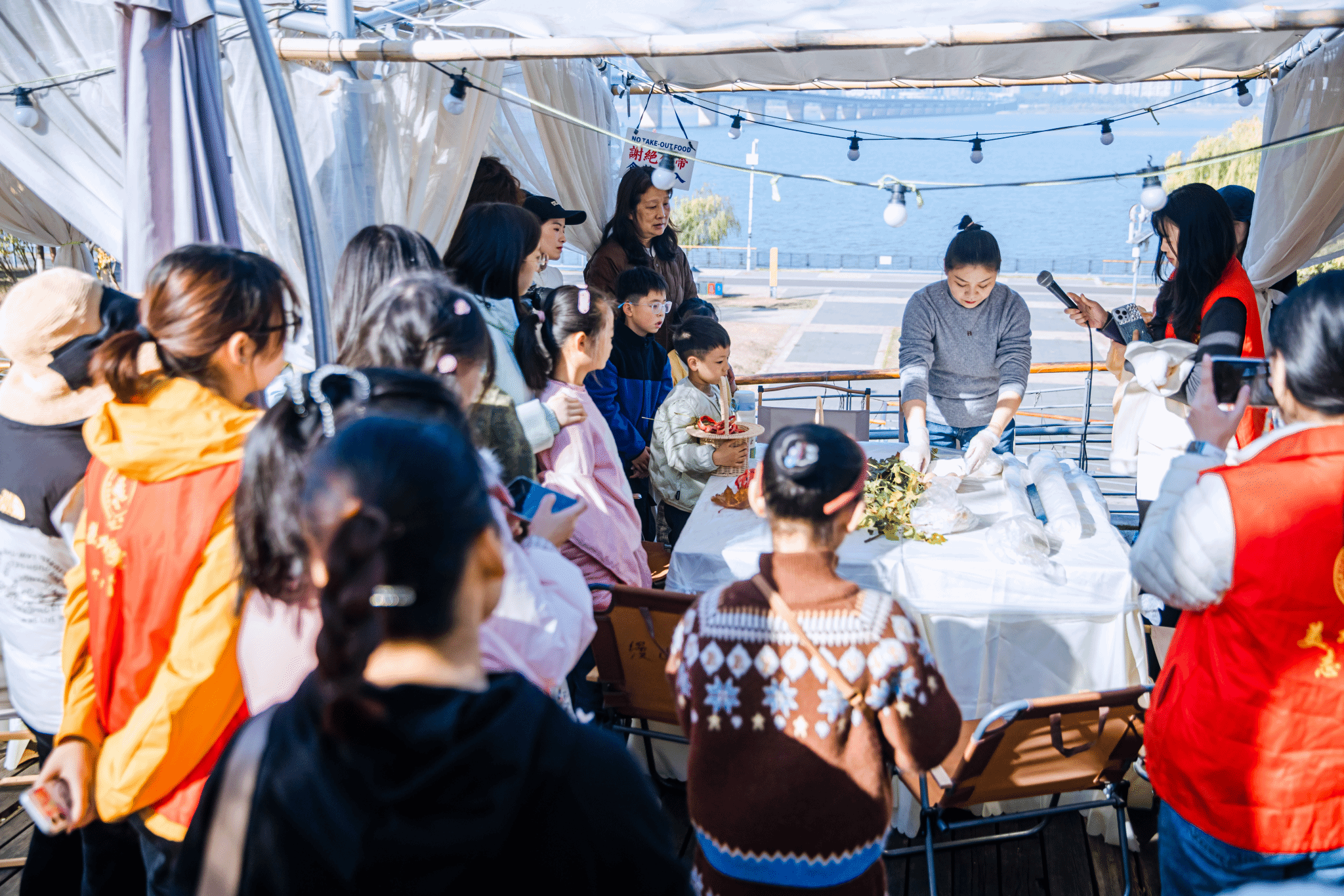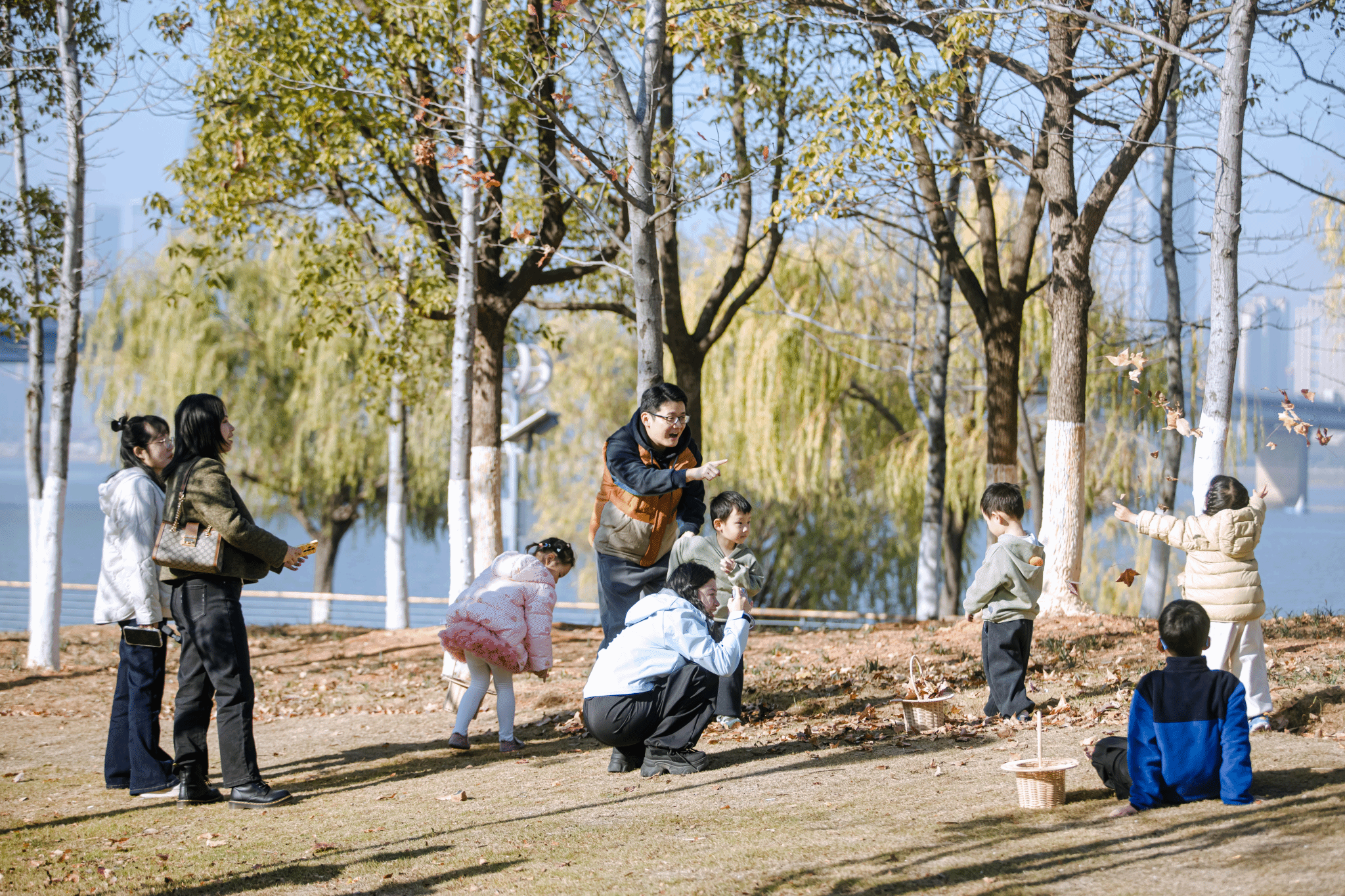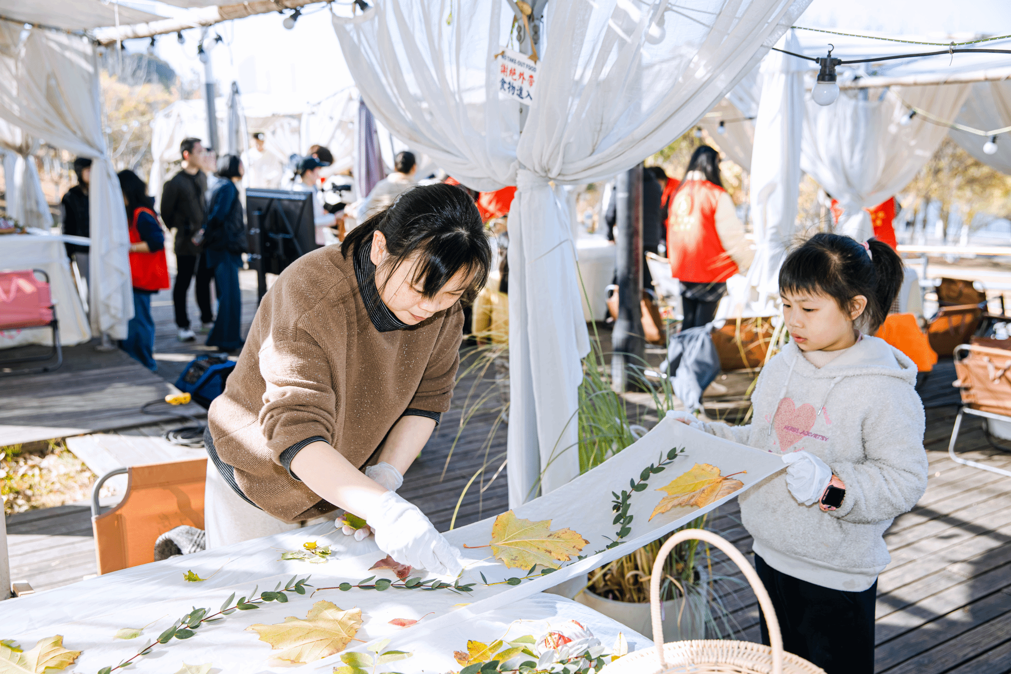 在实践体验环节,参与者们走进赣江岸边的自然环境中,亲手捡拾形态各异、色彩斑斓的花瓣与树叶,以柔软丝巾为创作载体,在工作室团队的专业指导下进行创意绑扎。