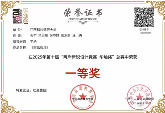 据悉,“两岸新锐设计竞赛・华灿奖是教育部认定的全国大学生学科竞赛国家A类赛事,在海峡两岸暨港澳地区具有广泛影响力,是青年设计师交流展示的重要平台。本届赛事规模再创新高,共征集作品128468件,吸引484496名海内外青年设计师踊跃参赛,竞争尤为激烈。我校师生此次脱颖而出,充分彰显了学校在设计类学科教学中的扎实功底与创新培养成效。