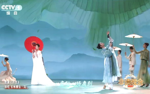 经晚会导演组严格遴选,工作室为歌曲《浮光》量身打造的系列夏布服装被正式确定为演出服装。在知名歌手希林娜依·高的深情演唱中,夏布织造技艺传承人及专业演员身着夏布服装联袂演绎,传统夏布的肌理质感与现代时尚的设计美学完美融合,轻盈的面料伴随着舞姿灵动舒展,将夏布的天然之美与非遗的活态传承展现得淋漓尽致,成为舞台上一抹亮眼的江西色彩。