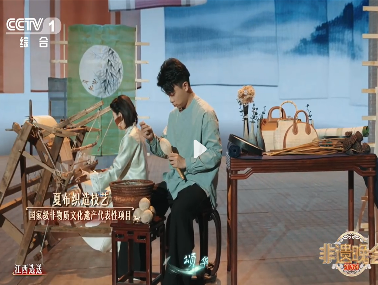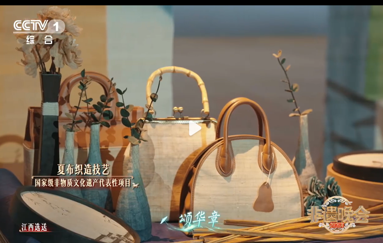 近日,由文化和旅游部与中央广播电视总台联合录制的《2026年非遗晚会》在央视综合频道(CCTV-1)精彩播出。我校美术学院“帛道坊”非遗夏布创新工作室师生设计的系列夏布服装及文创产品,作为江西省选送的代表性非遗创新成果,在晚会中精彩亮相。