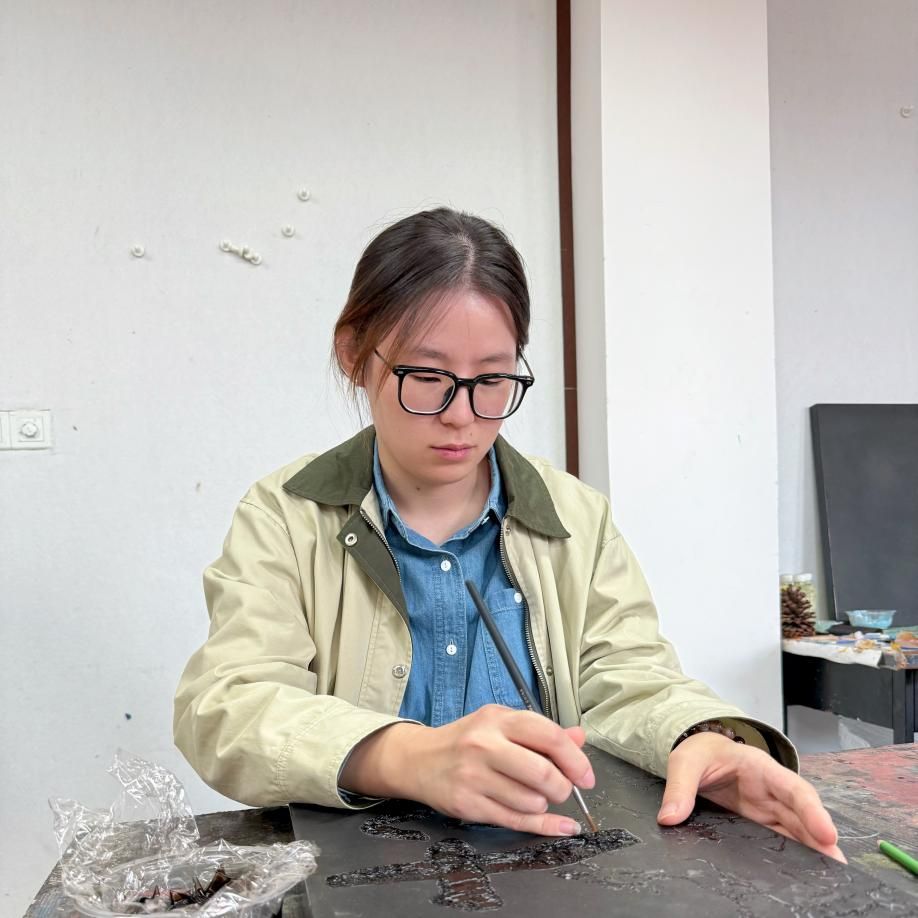 周欣,江西科技师范大学美术学院硕士研究生,师从寇焱教授。作品曾入选第十四届黑龙江省美术作品展览,第四届中国(宁波北仑)青年漆画展,第十一届江西省漆画作品大赛,第八届全国青年美术作品展览等多个展览。她善于从社会现象与自然平凡之处汲取灵感,致力于探索漆画语言在当代语境下的表达可能。