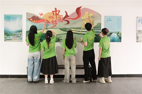 这面墙,不再只是墙面,而是成为传递民族故事、凝聚共同情感的“立体教科书”。学生们以画笔为语言,以色彩为桥梁,将民族团结的主题绘成生动画面,让美的教育在乡土间生根发芽。与此同时,学院全省优秀青年学生团队“红创先锋队”发挥设计专长,为浮梁茶叶优化包装,参与农产品品牌建设,提炼当地民族文化特色元素开发文创产品。艺术不再局限于画布,更成为连接城乡、促进振兴的实践力量。