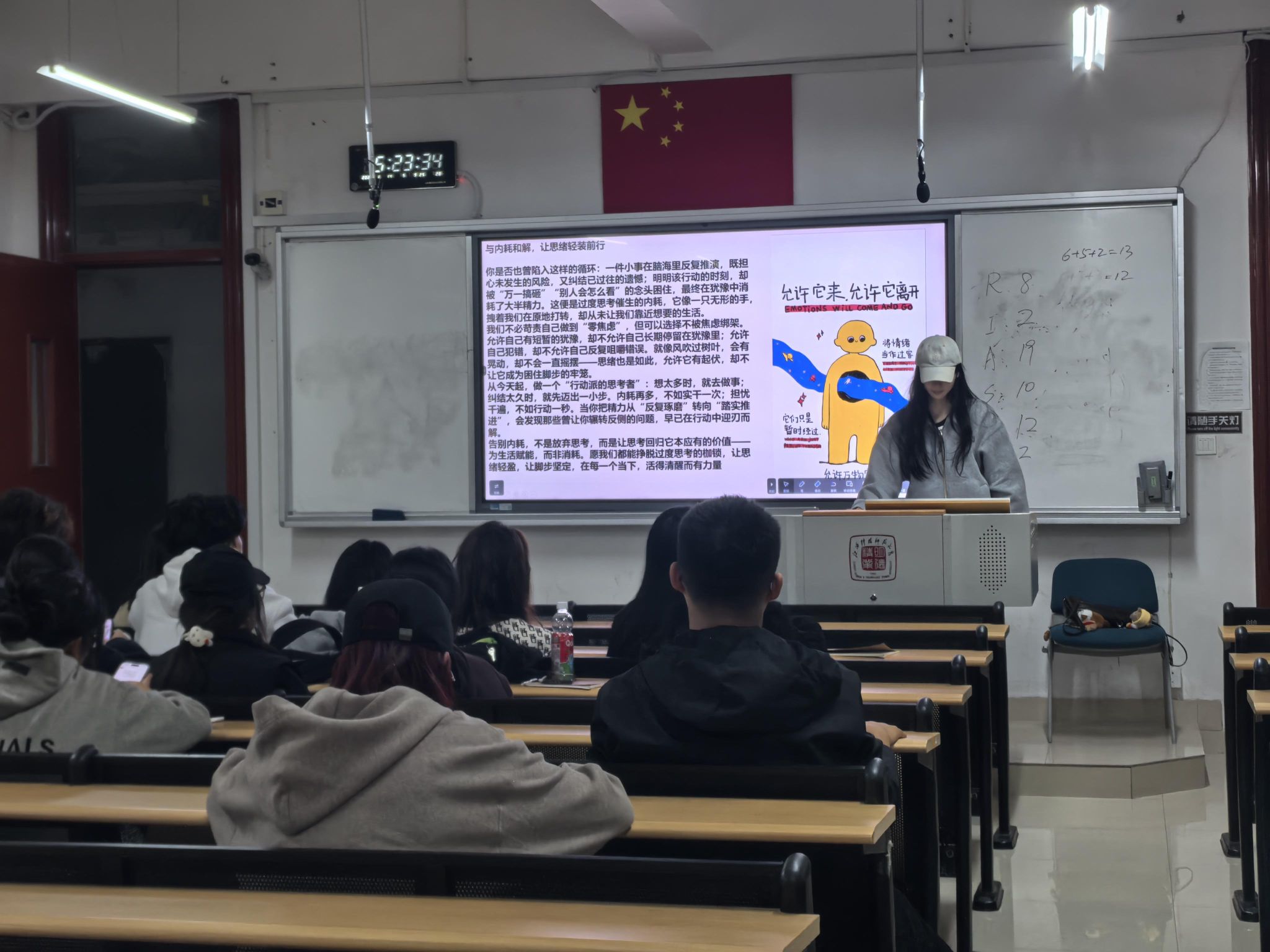 为帮助学生有效应对心理内耗,提升情绪管理与自我关怀能力,2025年11月,美术学院面向50余名同学,以“告别内耗:停止过度思考”为主题,推出首期心理小微课,以细腻的情绪共鸣与务实的行动指引,为青年学子解锁“与内耗和解”的心理密钥。