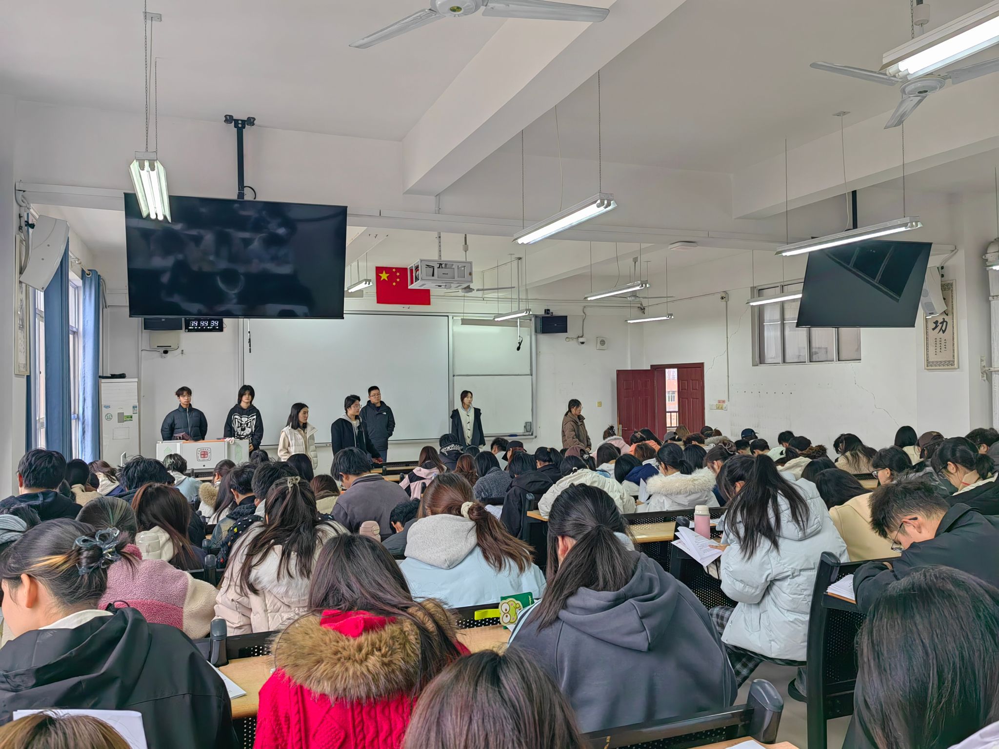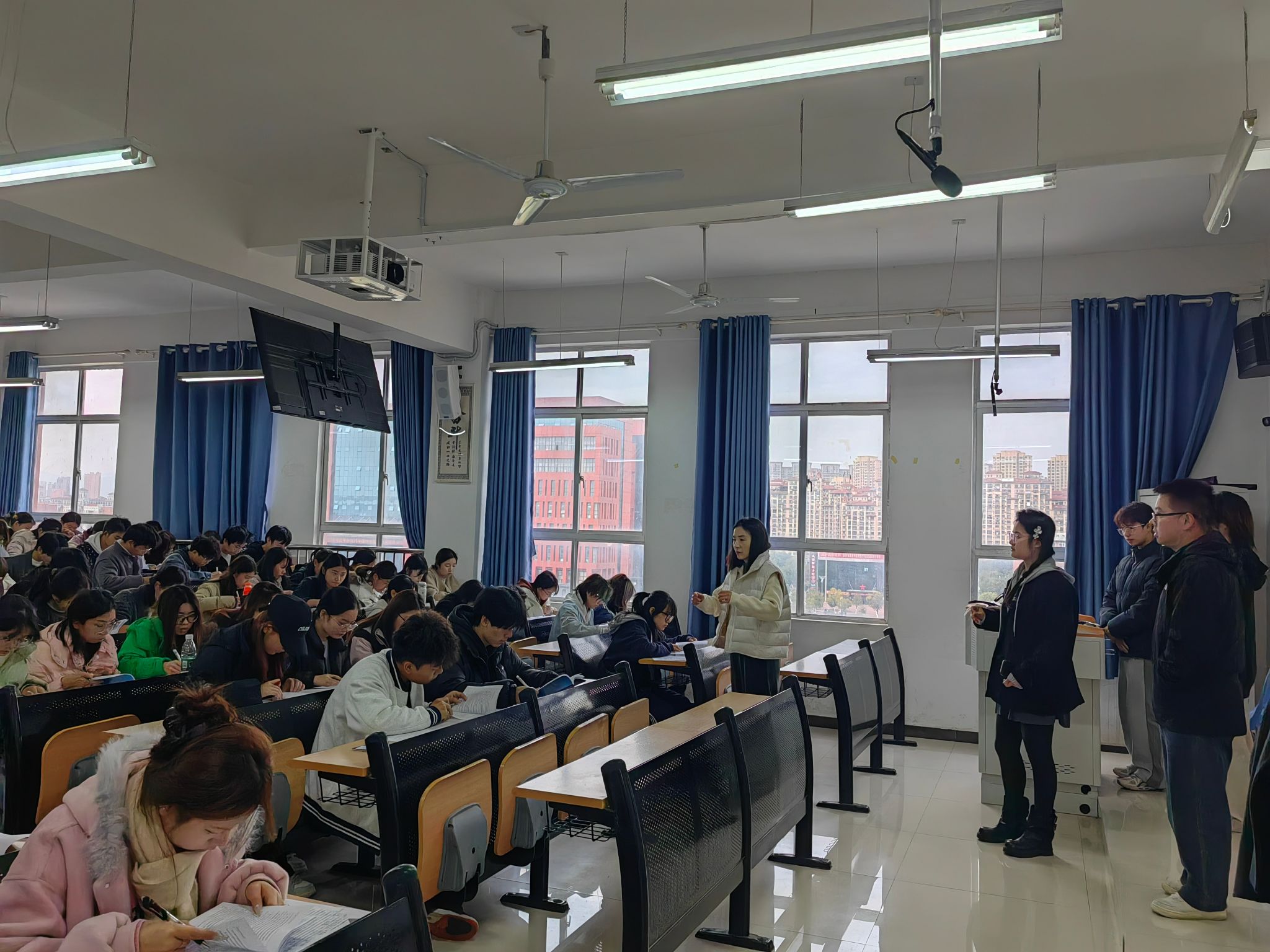 为帮助2025级新生全面了解学校的规章制度,强化纪律意识,助力学生更好地成长成才。2025年12月16日,美术学院组织2025级全体新生统一开展学生手册考试。本次考试采用线下开卷形式,全体新生辅导员、班助联合监考,学院党委副书记白露到场巡考,确保考试规范有序进行。