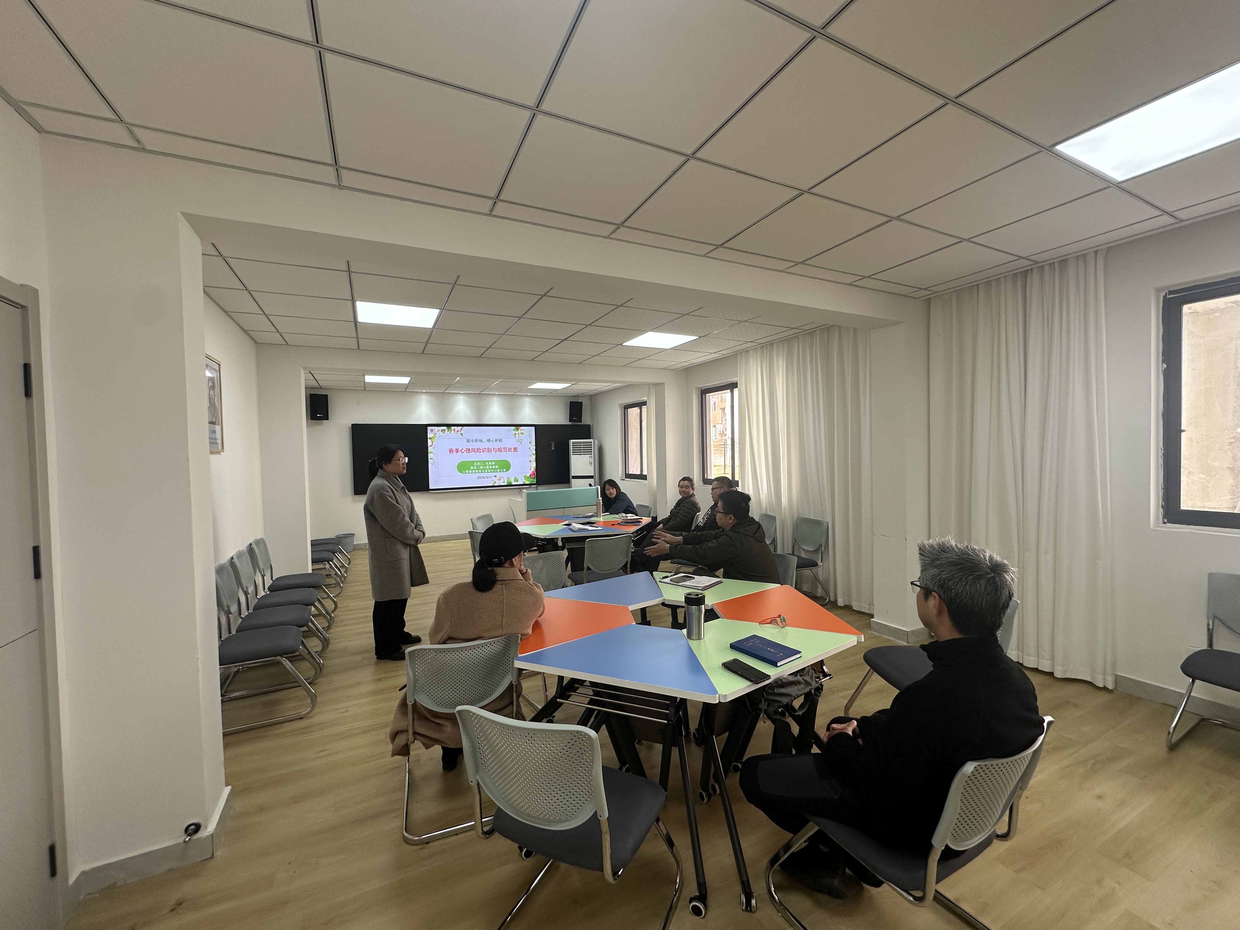 培训中,毛莉婷以“春季心理风险识别与规范处置”为核心主题,围绕学生心理危机排查工作规范、春季常见心理问题识别与疏导、案例分析与实操要点等核心要点,系统阐释了学生常见心理问题的具体表现,详解各类心理风险的科学应对方法,提醒辅导员、班主任在工作中落实早期识别、安全守护、及时转介、家校沟通等关键举措。