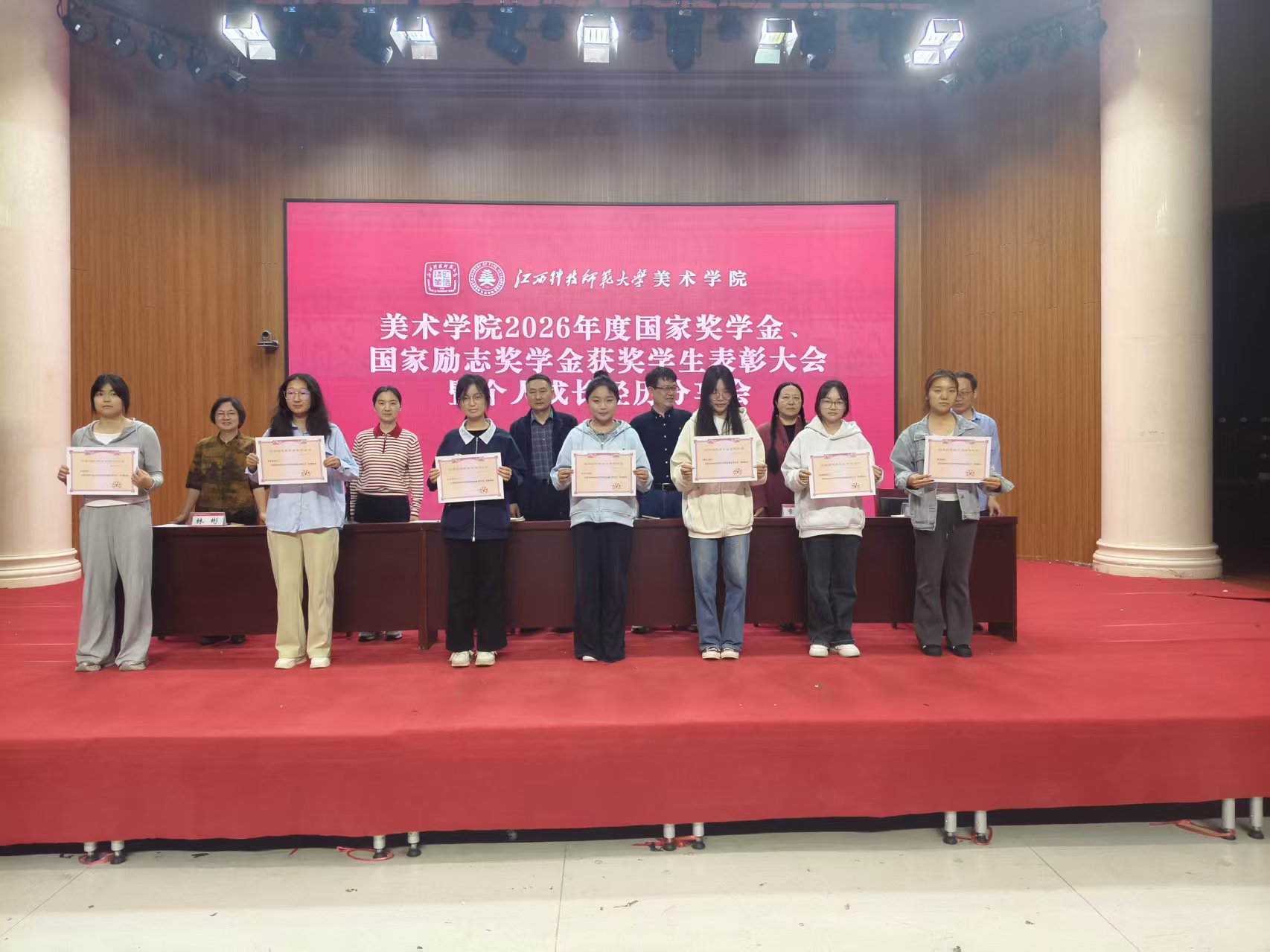 为深入贯彻立德树人根本任务,深化资助育人内涵,树立榜样力量,激励广大学生特别是家庭经济困难学生不断追求卓越、脚踏实地成才,美术学院于2026年4月7日下午成功举办了“2026年度国家奖学金、国家励志奖学金获奖学生表彰大会暨个人成长经历分享会”。美术学院家庭经济困难学生代表一百余人参加大会,学院党政领导和全体辅导员出席,大会由院党委副书记白露主持。